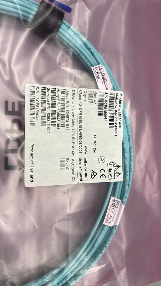 HPE 12M Ib EDR QSFP Optical Cable PN : 834972-B25 835043-001 836243-001