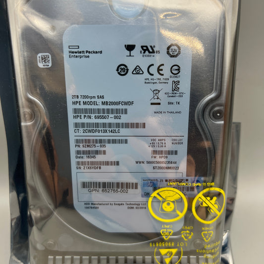 HPE 2TB 7.2k SAS SC HDD 3.5" with tray HOT-Pluggable 652755-002 695507-002