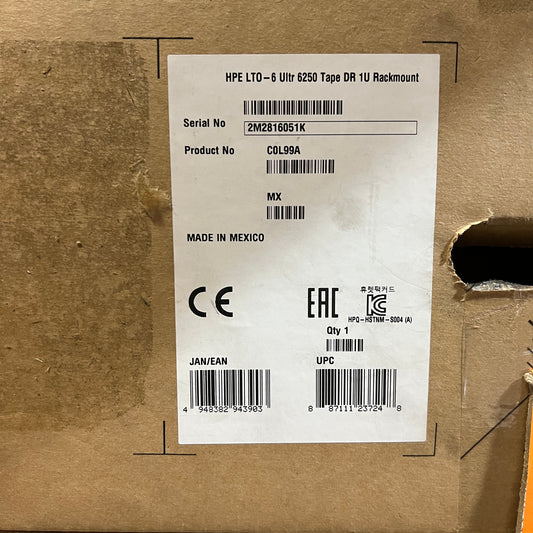 HPE StoreEver LTO-6 Ultrium 6250 Tape Drive 1U RackMount P/N:C0L99A