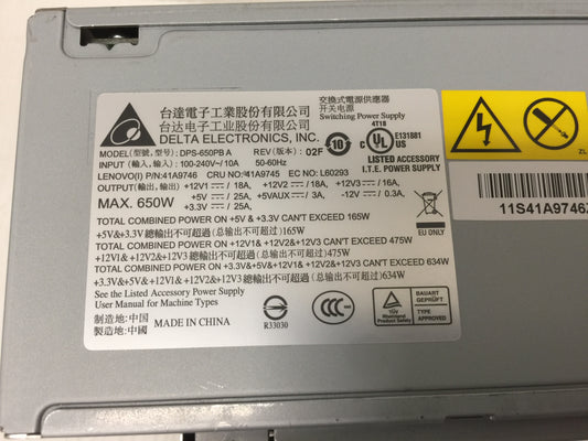 LENOVO 41A9746 Lenovo 650W Power Supply for Thinkstation S10 Used